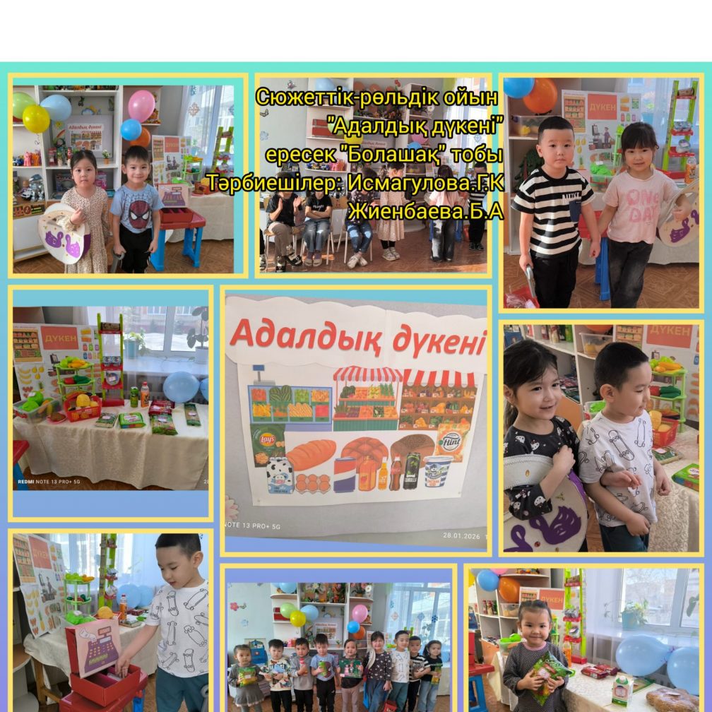 Сюжеттік-рөлдік ойын "Адалдық дүкені", ересек "Болашақ" тобы. Тәрбиешілер: Исмагулова Г.К., Жиенбаева Б.А.